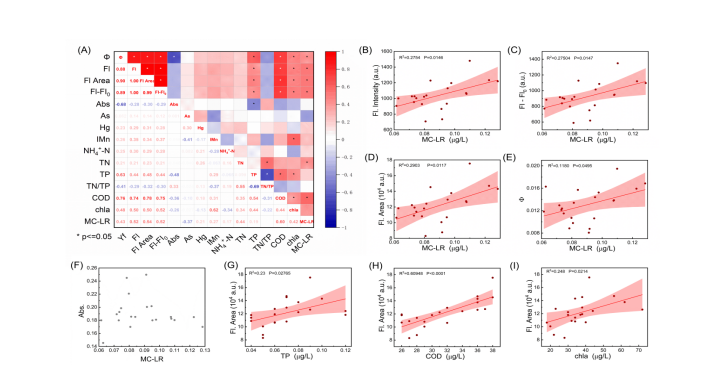 在成果一研究的基础上,本研究尝试将荧光分析技术用于湖泊内污染物的评估。与传统技术相比,这种研究模式实验程序更为简易,实验结果更为直观。虽然这类技术在水样中能够特异性检测MC-LR,这类研究为快速评估湖泊各区域MC-LR的浓度奠定基础。该研究在环境与生态学期刊Environmental Pollution, 342, (2024) 123123上发表题为“Analyzing MC-LR distribution characteristics in natural lakes by a novel fluorescence technology”的论文(论文链接:https://authors.elsevier.com/a/1iFACzLNSf-d7, IF =8.4)。2022级硕士研究生胡湘玉为论文第一作者,刘勇教授为该论文的通讯作者,bat365中文官方网站为第一通讯单位。