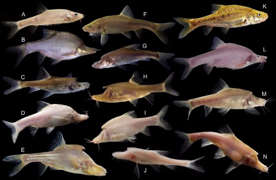 图1 金线鲃属(Sinocyclocheilus)鱼类部分物种(引自Niemiller et al., 2019,Dante B. Fenolio摄)