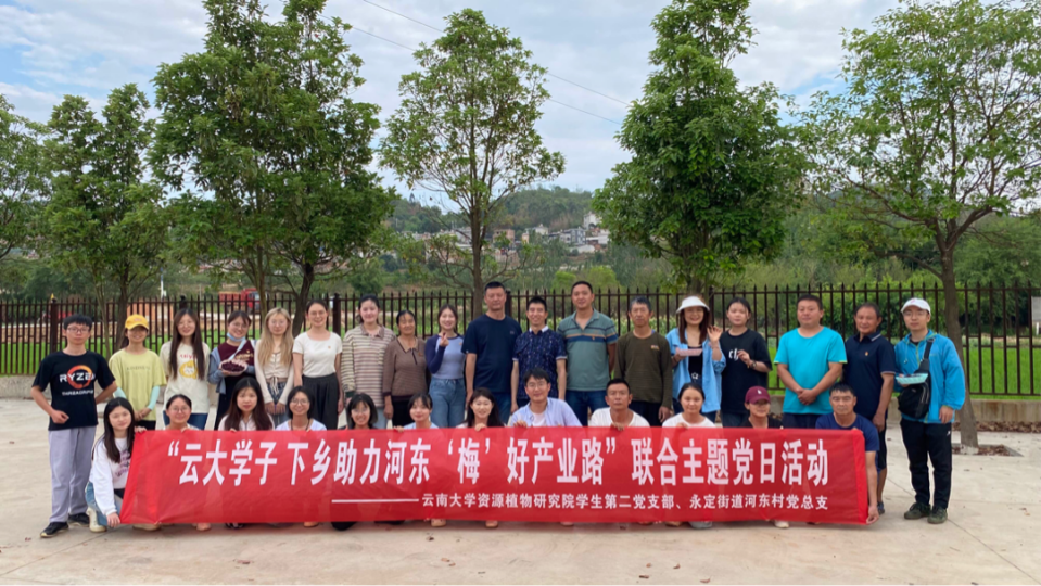 2023年6月7日,bat365中文官方网站资源植物研究院学生第二党支部师生受邀与河东村党总支联合开展“云大学子下乡助力河东‘梅’好产业路”主题党日活动,探寻构建红色联动、资源共享、优势互补的共建新路径,为基层党组织建设注入新能量。河东村地处昆明市富民县永定街道北面,距县城9公里,是远近闻名的“富民杨梅第一村”。此次主题活动旨在提升支部党员凝聚力,促进理论与实践相结合,积极推动乡村特色农业产业发展。
