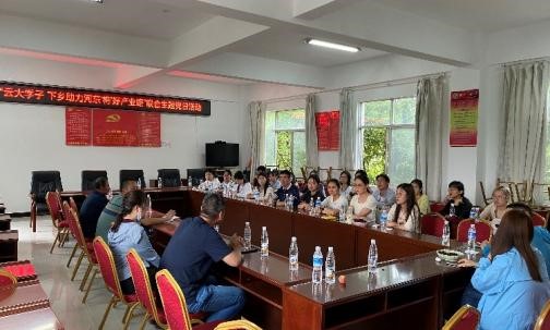 实地观摩结束后,云大师生党员与县农业农村局领导、河东村党员、杨梅种植户开展座谈交流,以问题为导向,围绕河东杨梅种植历史、种植技术难题以及杨梅产业发展等方面进行交流分享。富民县农业农村局农业科科长朱斌、农业农村局机关支部书记蒋成功以近三十年的工作经验向支部师生党员介绍了当前富民县农业发展取得的成就及发展中遇到的问题。村内经验最丰富的杨梅种植户向大家介绍了富民杨梅生长周期,就疏花疏果、整形修剪、水肥管理等栽培技术进行了分享。学生第二党支部书记吴学尉教授结合自身专业知识,就杨梅种植标准化、水肥管理、杨梅产业采后管理及运输及富民农业提档升级提出了意见。