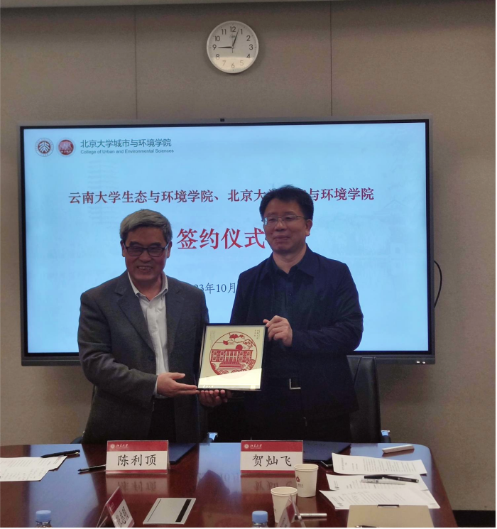 陈利顶院长和贺灿飞院长分别代表两个学院签署了生态学学科对口合作工作协议,并互赠纪念品。