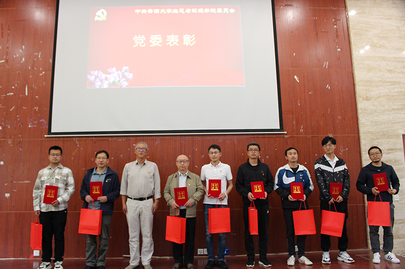 活动在庄严的国歌声中拉开序幕。领誓人肖蘅同志上台,带领新党员庄严宣誓。在场老党员重温入党誓词,铮铮誓言,充分表达了为共产主义事业奋斗终身的信心和决心。随后,学院党委进行了隆重的表彰仪式,对荣获2022年“先进党支部”、 “优秀党务工作者”和“优秀共产党员”予以表彰。由廖峻涛和吕军同志分别为受表彰的先进集体和先进个人颁奖。