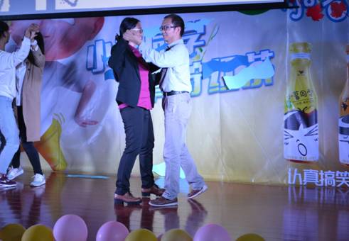晚会间隙的游戏环节,几位老师与同学一同参与其中。老师们一改往日严肃的作风做起了幽默的动作,游戏过程精彩不断,引发观众阵阵掌声,气氛一下子活跃起来,全场笑声不断。