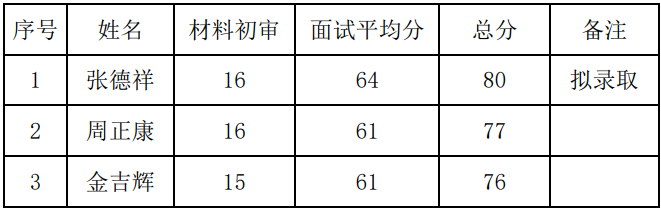 bat365中文官方网站(景观格局演变与区域生态安全课题组)公开招聘科研助理岗位面试于 2023 年 6 月 15 日上午 9:30 在腾讯 会议(ID:540 167 210)进行。经初审和面试后,考生综合成 绩公布如下: