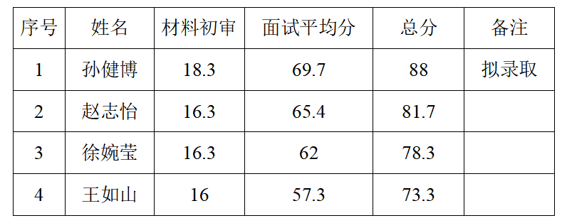 bat365中文官方网站全球变化与生态系统生态学实验室公开招聘科研助理岗位面试于2024年7月20日上午9:00在腾讯会议(ID:762 461 747)进行。经初审和面试后,考生综合成绩公布如下: