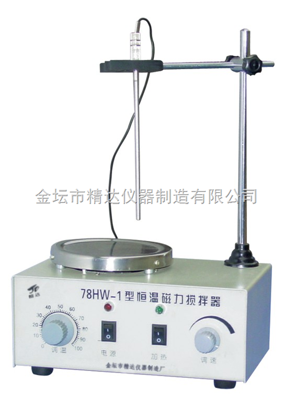 使用78HW-1数显恒温磁力搅拌器时,首先请检查配件是否齐全,然后按顺序先装好夹具,把所需搅拌的溶液放在镀铬盘正中。加入溶液把搅拌子放在烧杯溶液中,然后先插上仪器接插的电源插头,再接通电源打开电源调速开关,指示灯亮,即开始工作,然后选定你所需的温度,调速是由低速逐步调至高速,不允许高速档直接起动,以免搅拌子不同步,引起跳动,不搅拌时不能加热,加热有波段开关控制,不工作时应切断电源。仪器应保持清洁干燥,严禁溶液进入机内。